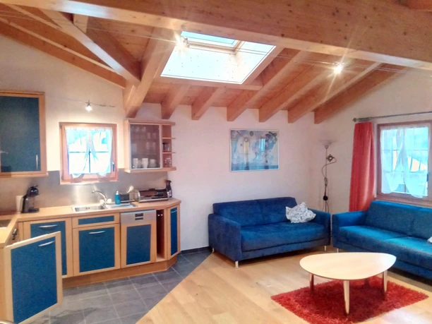 3 1/2 appartement dans le grenier nord avec balcon. L’appartement est très central. Épicerie, magasins de sport et office du tourisme à proximité.