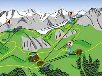 Bei den Bergbahnen und Infocentern der Aletsch Arena erhälst du eine kostenlose Panoramakarte.