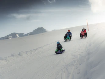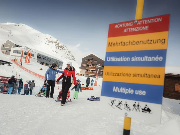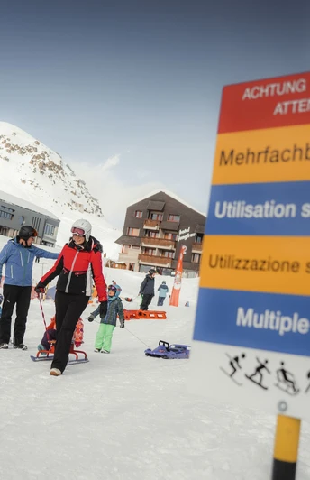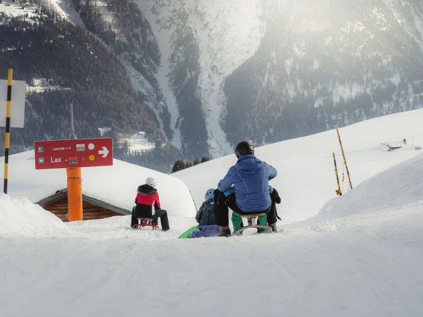 From Fiesch, take the gondola lift up to the Fiescheralp. From the mountain station, walk in an easterly direction for around 5 minutes to the start of the Fiescheralp - Lax toboggan run. Now 11 km of pure sledging fun awaits! The initially fast but safe section is followed by a romantic run through snow-covered forests that ends just above Lax. From Lax, the sports bus or the Matterhorn Gotthard Bahn (train) will take you back to Fiesch.