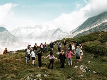 Surrounded and carried by a mighty natural backdrop at over 2000 meters above sea level on the beautiful Aletsch glacier, we let our drums sing and connect with each other.