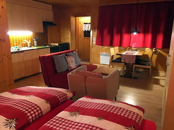 The Chalet Abendglöckli is located in a central yet quiet area, Center in village center, just a few minutes' walk from the cable car. From here, you can enjoy an impressive view of the surrounding mountains as well as the famous chapel "Maria zum Schnee." Thanks to its sunny southern location, the studio is particularly bright and inviting. The proximity to mountain lifts, shopping opportunities, and nature makes the chalet an ideal starting point for relaxing or active holiday days.