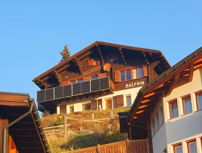 Top position + super panorama + with skis start on your doorstep and back + above the main street. The chalet Balfrin is just a few minutes away from the mountain cable car, village center, Trainerlift and Blauseelift. In the heart of the Aletsch Arena: ski resorts with over 100 kilometers of slopes in a beautiful location: skiing, snowboarding, snowshoeing, cross country skiing, sledding downhill ... There is the opportunity for many beautiful winter hikes and excursions in the Aletsch Forest to do and enjoy the nature and to marvel at. The Aletsch Arena offers an extensive leisure program in the summer and in winter. The chalet Balfrin offers two well-equipped, comfortable apartment for 1 to 4 people. It is in a sunny, unspoilt location on the south and the large terrace or balcony offers space to relax in the sun. From there you have a great view to the east over the Bettmeralp into the Goms and at the west side to the DOM 4'545m above sea level and Balfrin 3'796 m above sea level. see also http://www.chalet-balfrin.ch/balfrin/.