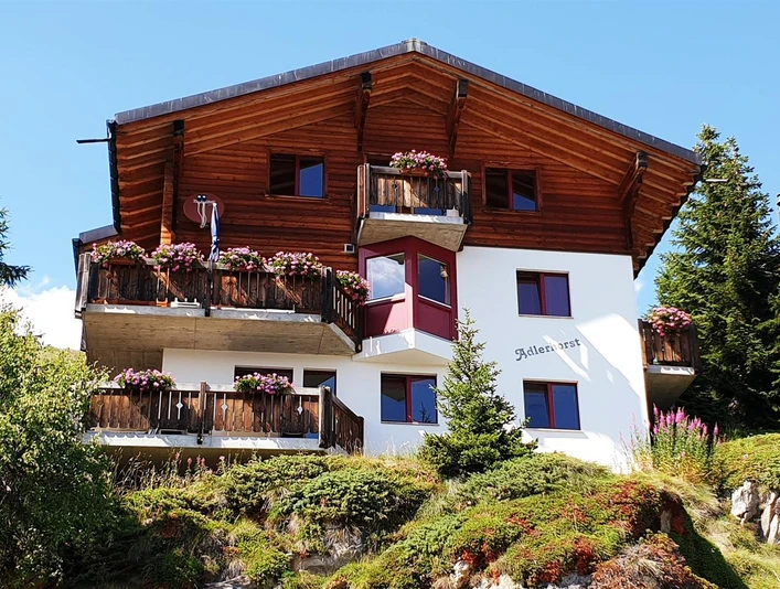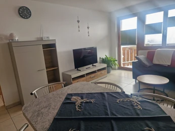 Comfortably furnished 4-room apartment with 5 beds. The apartment consists of two double rooms and one single room. Our Adlerhorst chalet is located just a few meters from the Bettmerhorn gondola and the sports center. The chalet is located in the upper part of the village with unobstructed views, near the Bettmerhorn gondola. The village center is just a few minutes' walk away.