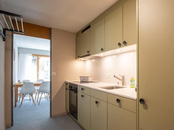 The holiday apartment on the first floor is centrally located in Fiesch and is easily accessible by public transport. The Fiesch public transport hub is only about a seven-minute walk away. Shopping facilities such as a grocery store, sports shop, bank, and pharmacy are also quickly reachable on foot. The region is ideal for hiking or golfing in the Valais during summer and offers direct access to the Aletsch Arena with its diverse ski slopes in winter. The cross-country skiing area of Goms is also just a few minutes by car away. The holiday apartment accommodates up to six people, making it suitable for families or groups.