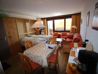 Be our guests in our cozy studio with great views of the four-thousand-meter peaks of Valais. Look out from the south-facing balcony to the Matterhorn, Weißhorn and Dom and simply enjoy the tranquility.