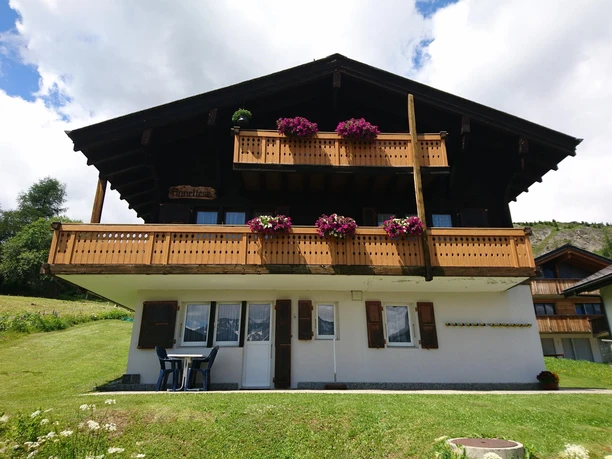 Chalet Anneliese: central, sunny situation in direct proximity of aerial ropeway, post office, restaurant and purchase shops. the Chalet has a 3-room dwelling in the ground floor and a 3-room dwelling in the 1st floor. Ski runways and long-distance running piste in the winter, as well as 9-hole-golf course in the summer, are directly before the house.