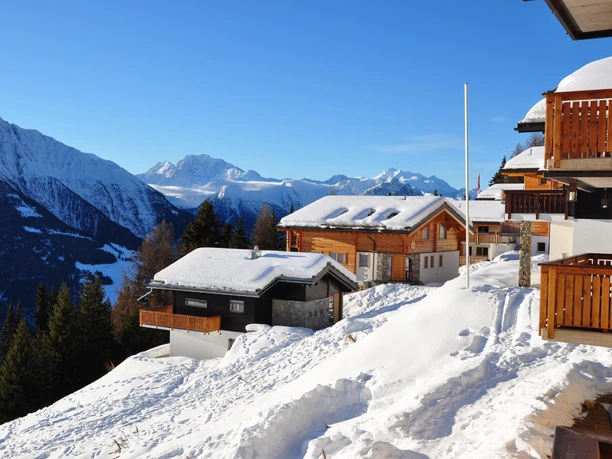 Apartment house "Camelot" - 7 flats - 2004 Quiet and centrally located in the Alpmatten, from cable car station 550 m, about 10 min walk. Not far from the pedestrian connection to the village and the lift leading down the valley road, which is in the winter to ski, to the nearby ski and winter hiking trail to Betten Village. The house, with storage room and laundry room, directed to the balconies on the quiet south, with an unobstructed view of the mountains opposite to the Valais Alps.