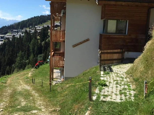 Leave your car in the car park at the lower station in Betten (Betten Talstation) and take the aerial cable car to car-free Bettmeralp. The journey takes about 6 minutes. Chalet Gletscherfloh is in a quiet location and easy to find. Walk towards the miniature golf course/ski school assembly point and take the narrow path between Chalet Steinbock and Chalet Alphubel. Walk along the path up to Chalet Veronika and you will soon see the roof of your holiday chalet Gletscherfloh.