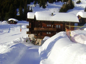 On the slope of the Moosfluh-Bahn next to the ski slope and the hiking area.