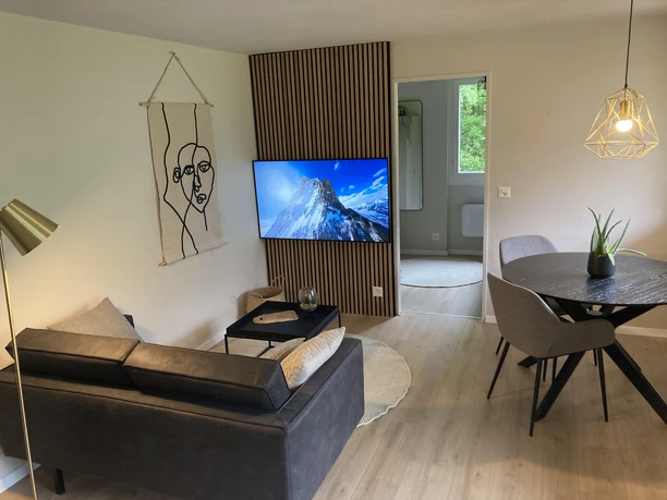 House Leopold is located in the district of Breiten above Mörel and impresses with its quiet location on a sunny slope with a free view of the Rhone Valley and the Walliser Alps. The proximity to the mountain railways to Riederalp and the Mörel train station allows for straightforward access and excursions even without a car. The surroundings are quiet, but not isolated, so you can find relaxation in the midst of a small neighborhood. The apartment on the ground floor of a traditionally designed chalet has been stylishly renovated and offers a successful combination of alpine charm and modern living comfort – ideal for two people who want to combine nature experiences with a high-quality home.