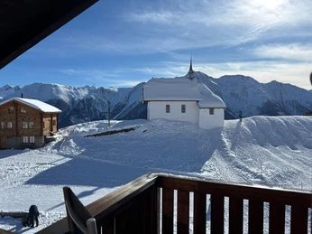 The Chalet Messfluh welcomes you to the car-free Bettmeralp, directly opposite the Chapel of Maria zum Schnee. The attic apartment combines traditional chalet elements with modern living comfort and offers you a quiet, central location right in the village. In just a few minutes on foot, you can reach both shopping facilities and restaurants as well as the ski lifts. From the accommodation, you can enjoy an impressive panorama of the surrounding mountains of the Valais Alps.