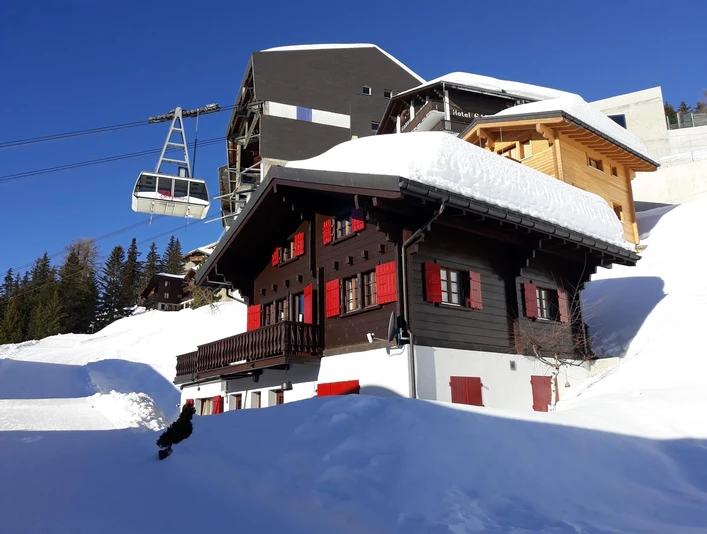How do you get to the apartment? To the right of the exit of the mountain station of the Bettmeralp cable car, use the spiral staircase or the lift to get to the lower path (towards the Alpmatten ski lift). After about 50m you will reach a path on the right that branches off downwards. After a curve you will find the house on the right-hand side.