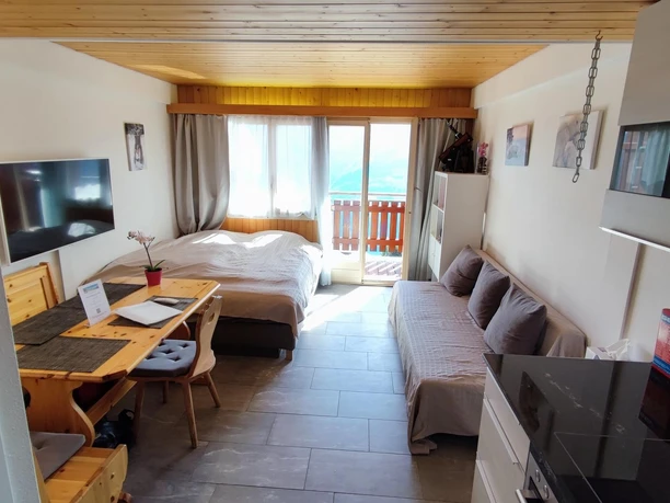 Unser Studio Nr. 15 befindet sich im Haus Topas, auf der 2000 Meter hohen, schneesicheren und autofreien Bettmeralp im Aletschgebiet.