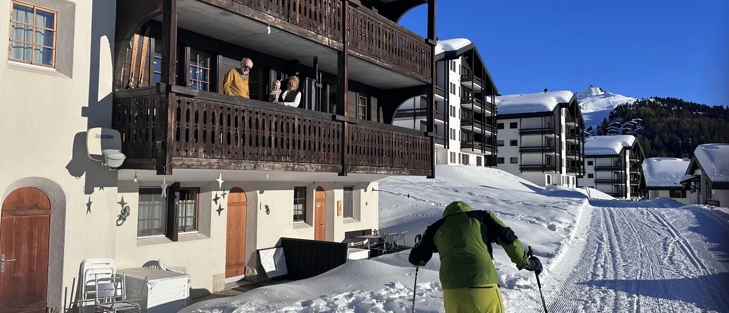 To reach the studio, take the passenger lift at the mountain station to the 2nd basement floor and then walk about 300 meters in the direction of Alpmatten before turning right to “Zum Altu Gadu”. Please use the western entrance for the studio on the first floor, which is signposted with your name.