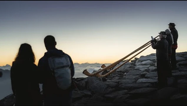 Minute by minute, the light gradually overcomes the darkness and the Matterhorn and the Eiger, Mönch and Jungfrau, and others, appear in the distance. Thanks to the 360° panoramic view, you also have a spectacular view of the Great Aletsch Glacier. This magical moment is accompanied by the sound of the alphorn.