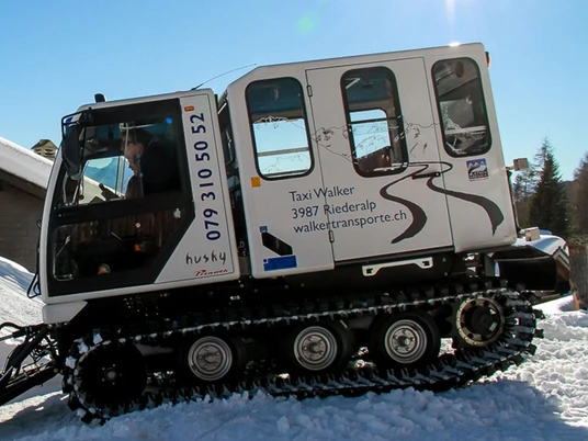 Fast, comfortable and reliable: The Snow Shuttle on the Riederalp runs on an east and a west route and takes you comfortably to your destination in just 5-10 minutes.