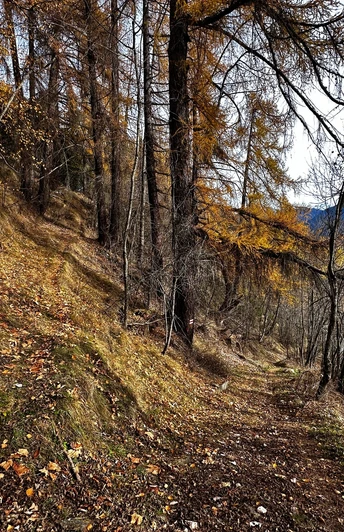 Head downhill from here. The descent passes back through the same vegetation zones: first open meadows, then the long shady belt of larch, pine and birch. The closer you get to the valley floor, the more the sounds of the village return, until you once again reach the meadows on the outskirts of Mörel – the point where the loop closes and the mountain behind you falls silent once more.