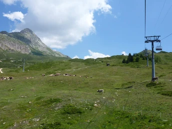 From the mountain station of the Bettmeralp cable car, walk eastward to the Schömbiel or Wurzenbord chairlift. One of these two facilities is operational during the summer months and will bring you to the starting point of the theme route. The marmot learning trail leads you down to Bettmersee. At four information stations you will learn interesting facts about marmots on this easy hike. The chances to observe the shy animals are good.