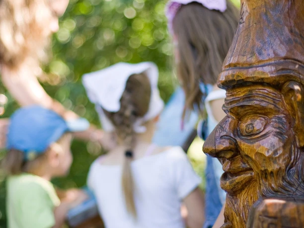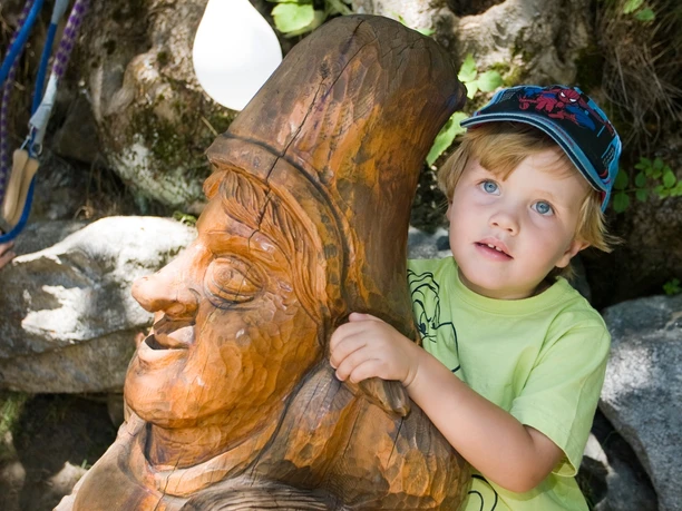 For your exciting treasure hunt, first get a Gletschi's treasure map at the Infocenter in the public transport hub in Fiesch (open Monday to Saturday)! You need this to solve the riddles along the trail. Then you’re ready to go: follow the Kirchweg and hike along the Gogwärgiweg themed trail into the approx. 2.5 km distant Fieschertal. Then return to Fiesch via the Bregeraweg. Along the approximately 5.7 km long route, you will repeatedly encounter Gogwärgini—hand-carved wooden dwarfs that indicate one of the eight riddle stations. Now it's time: take out your treasure map and solve the riddles! Have you solved all the riddles? Then you should be able to find the solution word. Good luck!