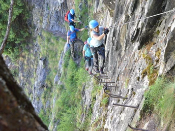Rockfall hazard: There is a risk of rockfalls on via ferratas, often triggered by preceding climbers or wildlife. Therefore, protect yourself with a helmet.