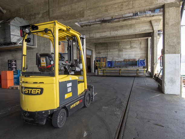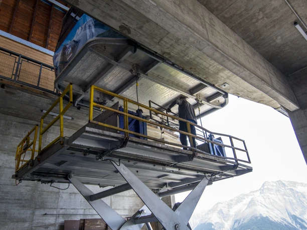 Tout le transport de marchandises de la vallée vers la montagne et inversement passe par le chargement de marchandises de la station aval vers la halle de marchandises située près de la station amont de Riederalp Centre.