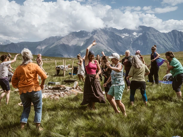 Entourés et portés par un puissant décor naturel à plus de 2000 m d'altitude sur le magnifique glacier d'Aletsch, nous laissons notre tambour chanter et se connecter entre eux.