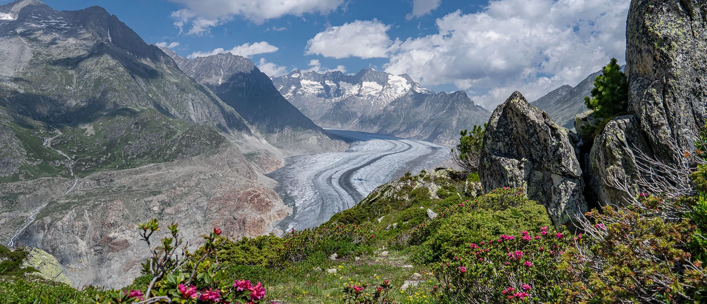 Le décor impressionnant de ce site classé au patrimoine mondial de l'UNESCO est marqué par le grand glacier d'Aletsch, tandis que la forêt d'Aletsch, riche en espèces, enrichit le paysage de sa flore aux senteurs épicées. Des inputs spécialisés le long de l'itinéraire donnent un aperçu du paysage alpin autour du grand glacier d'Aletsch.