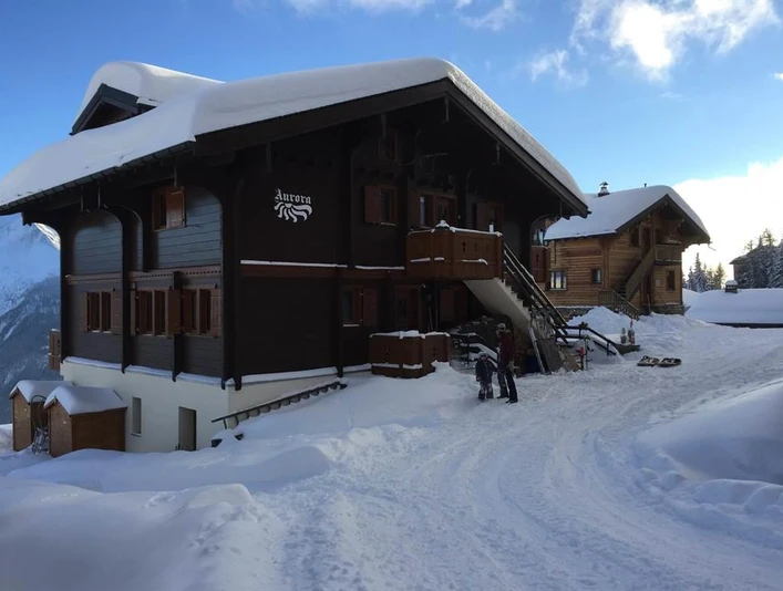Description du trajet : A la station supérieure du téléphérique de Bettmeralp, restez à droite, après 3-5 minutes de marche du téléphérique, tournez à droite juste avant la Coop et traversez la surface libre pour arriver directement au Chalet Aurora.