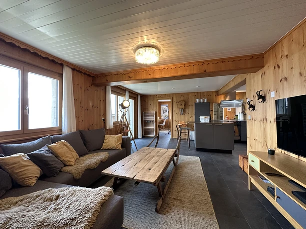 Gamma 02 est un appartement moderne de cinq pièces offrant une surface d'environ 92m2 avec de la place pour six personnes. L'appartement se trouve au rez-de-chaussée avec sa propre place de jardin (orientation plein sud) et offre une vue magnifique. Il dispose de trois chambres séparées (troix avec lit double et un lit d'enfant sans linge), deux salles de bain avec douche, un grand salon et une grande salle à manger. La cuisine, ouverte sur salon, est bien équipée avec une cuisinière et une hotte modernes, un four, un lave-vaisselle, un service fondue et raclette, un grille-pain, une bouilloire électrique et une machine à café (Nespresso). L'appartement tout entier est équipé d’un chauffage au sol. La maison est située dans un quartier calme en contrebas de la célèbre chapelle Bettmeralp (à trois minutes à pied).