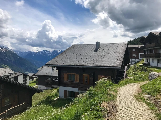 Comme presque partout dans le village de Bettmeralp, qui est interdit à toute circulation motorisée, la maison n'est accessible que par un large sentier. Après cinq minutes de marche à pied depuis le téléphérique, tournez vers l'hôtel Slalom et suivez le chemin. Les bagages peuvent être transportés avec une charrette à bras, un traîneau ou par taxi-bagages (prix indicatif CHF 30.-).