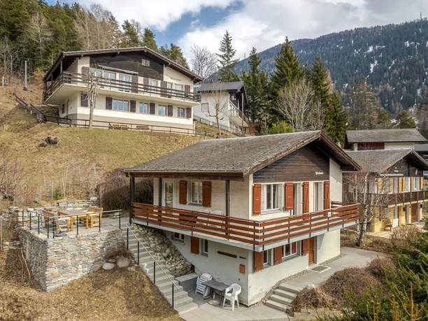 Le chalet est situé dans un endroit ensoleillé au-dessus de Fiesch et offre une belle vue sur la vallée du Rhône. Il se trouve à quelques minutes à pied du centre du village, de la gare et de la télécabine qui donne accès à l'Aletsch Arena. La maison se compose de deux appartements de vacances séparés pour quatre personnes chacun, qui peuvent être loués individuellement ou ensemble. Les environs sont idéaux pour des activités sportives telles que la randonnée, le ski, le ski de fond ou le vélo. Grâce à sa situation surélevée, vous profiterez de nombreuses heures de soleil directement devant la maison.