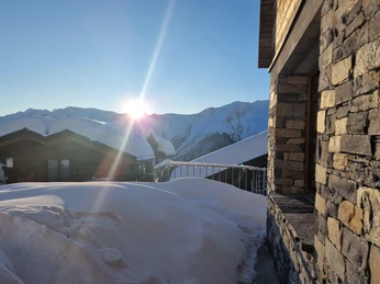 Ce chalet moderne est situé au centre piétonnier de Bettmeralp à 1950 m d'altitude et offre une vue spectaculaire sur les Alpes valaisannes. Grâce à son emplacement légèrement surélevé, vous bénéficiez d'une vue dégagée sur le monde montagnard – de la chapelle « Maria zum Schnee » au Cervin. Que ce soit pour le ski en hiver ou la randonnée en été, les activités commencent juste devant la porte. La maison, décorée avec goût, allie confort et ambiance alpine et est particulièrement bien adaptée pour ceux en quête de repos et les invités actifs.