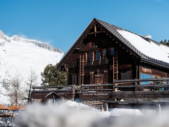 La maison de groupe Riederfurka est fermée en hiver.