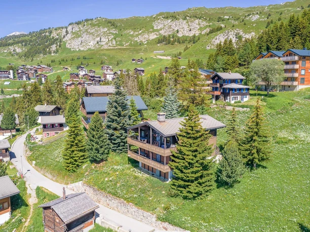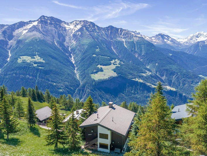 Le Chalet Rübezahl est situé dans un endroit calme sur la Golmenegg au-dessus de Riederalp et offre une vue impressionnante sur les montagnes environnantes. Grâce à sa position sur la Fleschstrasse, il est directement relié à un réseau populaire de sentiers de randonnée et de pistes cyclables. En hiver, l'accès proche aux pistes de ski permet des options de ski-in. L'appartement de vacances se trouve au premier étage du chalet et est accessible par un escalier séparé. La combinaison de charme alpin et d'une conception spacieuse en fait un lieu de retraite idéal pour les amoureux de la nature et les vacanciers actifs.