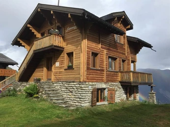 Description du trajet : à la station supérieure du téléphérique de Bettmeralp, restez à droite, après 3-5 minutes de marche du téléphérique, tournez à droite juste avant la Coop et traversez l'espace libre pour arriver directement au chalet Sunnegg.