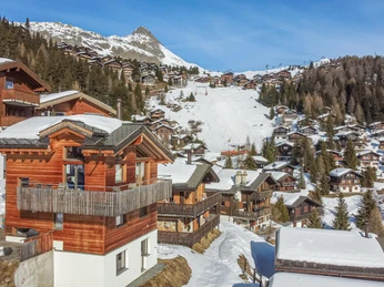 Ce chalet de trois étages est situé à proximité immédiate de la route principale Alpmatten ainsi que du téléski qui mène à la route principale de Bettmeralp. Son emplacement central sur la Bettmeralp sans voiture te permet d'atteindre le centre en environ dix minutes à pied. En une minute, tu peux rejoindre la piste de ski qui t'emmène directement au télésiège Alpmatten. L'hébergement allie une construction traditionnelle à des éléments modernes, créant ainsi une atmosphère authentique de montagne. Avec sa disposition des espaces bien pensée, le chalet offre le cadre idéal pour un séjour relaxant au cœur des montagnes valaisannes.