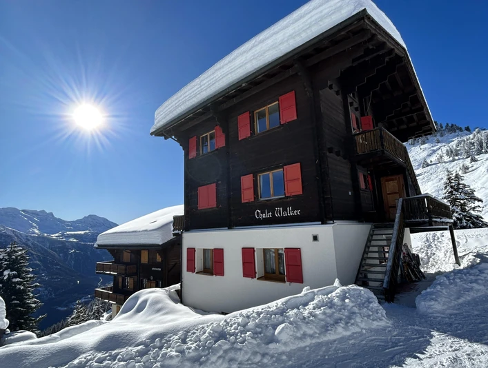 L'appartement de 3 pièces avec balcon se trouve au 1er étage du chalet Walkers et peut accueillir 4 personnes. Le logement est accessible en 5-10 minutes à pied depuis la station supérieure de la télécabine de Riederalp Ouest. Situé entre les remontées mécaniques de Riederfurka et Hohfluh, l'appartement se trouve directement à côté des pistes ainsi que du chemin de randonnée.