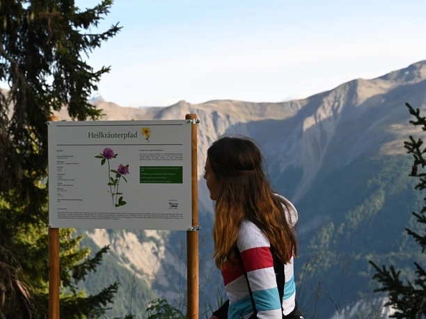 Depuis la station supérieure du téléphérique Bettmeralp, tu marches en direction est à travers le village jusqu’au Seilpark Baschweri : c’est ici le départ du chemin thématique Heilkräuterpfad, créé en autonomie par Nina Brechbühl comme travail de maturité pour le Kollegium Brig. Suis d’abord le chemin assez plat, en passant par le Seilpark Baschweri, jusqu’à la Martisbergeralp. Après environ 30 minutes de marche, le parcours te fait faire un demi-tour à 180° vers l’ouest. Après une légère montée, le terrain redevient plat et tu marches maintenant en direction d’Alte Stafel. De là, emprunte le chemin descendant en passant par la maison de groupe Möriken-Wildegg pour revenir au point de départ. Durée pure de marche environ 1 heure.