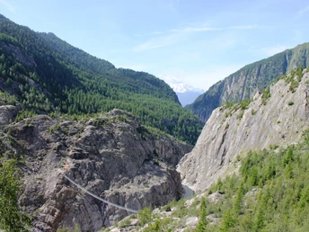 Depuis la station intermédiaire du téléphérique Riederalp Mitte, tu empruntes via Riederalp West un sentier bien aménagé jusqu'à la Riederfurka. Là, le premier point fort t'attend avec le Centre Pro Natura Aletsch dans la Villa Cassel. De la Riederfurka, tu descends ensuite par la forêt Teiffe jusqu'au Lac Vert, puis tu traverses le pont suspendu Riederalp – Belalp pour atteindre l'autre versant de la vallée, l'Aletschi. Suit la montée par Leng Acker jusqu'à la chapelle, puis le chemin de liaison vers le spectaculaire chemin panoramique d'Oberaletsch. Sur ce parcours, tu traverses d'abord la gorge d'Oberaletsch, puis longe la rive droite de la vallée, le long du glacier d'Oberaletsch, jusqu'à la cabane SAC d'Oberaletsch (2'640 m). Le retour se fait par le même chemin jusqu'à la région de Walkenen. Là, tu suis le chemin en direction ouest jusqu'à Belalp. De là, tu prends le téléphérique jusqu'à Blatten b. Naters, continue en car postal jusqu'à Brig puis le train.