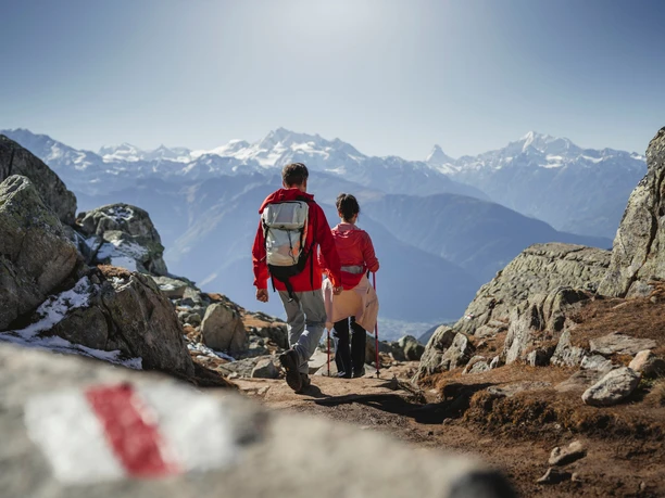 Le point de départ de la randonnée est le point de vue Bettmerhorn, à deux minutes de la station de montagne du téléphérique Bettmerhorn (2 647 m). Tu commences par une légère descente via «Uf de Setzu» en direction de Roti Chumma. Le Grand Glacier d'Aletsch est constamment visible sur ce tronçon, tu t’en approches pas à pas. Par un chemin taillé dans la roche avec des marches en pierre, tu continues en direction de Märjela, du lac Märjelen et de la cabane Gletscherstube. De retour sur le plateau ensoleillé de l'Aletsch Arena, tu peux passer par Unneres Tälli ou Oberes Tälli (variante plus courte via le tunnel Tälligrat éclairé d'1 km). Tu marches jusqu'à Salzgäb puis suis le chemin en descente jusqu'à Fiescheralp. La dernière étape de cette magnifique randonnée te ramène à Bettmeralp.