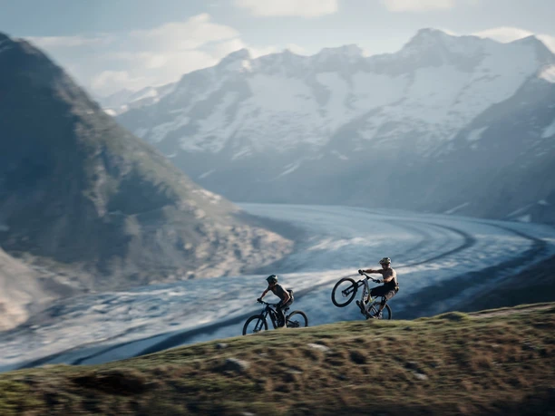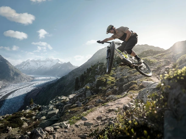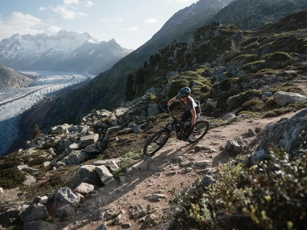 Wichtiger Hinweis: Den Trailabschnitt vom Bettmerhorn bis zum Biel – wo du anschliessend links abzweigst Richtung Bettmeralp – empfehlen wir früh morgens oder am späteren Nachmittag zu fahren. Grund: Auf dem Abschnitt der Gratwanderung zwischen Moosfluh und Bettmeralp ist tagsüber viel Wanderbetrieb unterwegs.