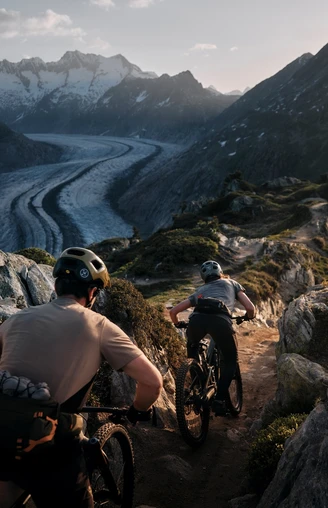 Unterwegs erwarten dich auf den Aletsch Enduro Trails zahlreiche Aussichtspunkte, Bergdörfer mit Charakter und jede Menge Spots für eine Pause – sei’s für Rösti, Käseschnitte oder den Sprung in den Bettmersee.