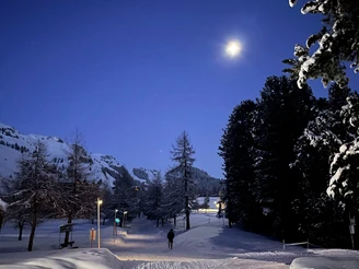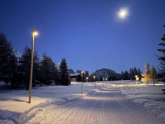 Während du gemütlich den Lichterweg entlang schlenderst, über den Golfplatz quer über die Furrerstrasse weiter zur Chieweide schafft jedes Licht eine magische Stimmung.