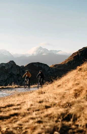 Wo zutreffend, verkehrssicheres (E-)Mountainbike mit viel Federweg, Klingel, Vorder- und Rücklicht und Speichenreflektoren.