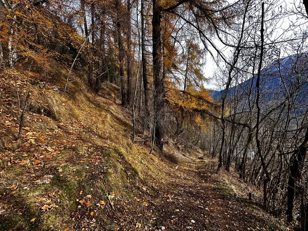 Von hier aus geht es schliesslich weiter talwärts. Der Abstieg führt zurück durch dieselben Vegetationsstufen: erst offene Matten, dann der lange schattige Gürtel aus Lärchen, Föhren und Birken. Je näher du der Talsohle kommst, desto deutlicher treten wieder die Geräusche des Dorfes hervor, bis du schliesslich erneut die Wiesen am Rand von Mörel erreichst – dort, wo sich die Runde schliesst und der Berg hinter dir wieder still wird.