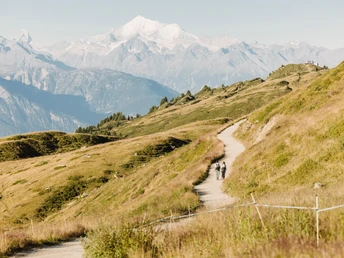 Von der Bettmeralp wanderst du gemütlich Richtung Osten. Der Weg führt über weite Alpenwiesen und bietet dir einen beeindruckenden Blick in den Dorfkern. Über die Bättmer Hitta und den Bettmersee gelangst du zur Laxeralp. Von dort führt der gut ausgebaute Höhenweg weiter zur Fiescheralp. Unterwegs geniesst du immer wieder herrliche Ausblicke auf die Walliser Viertausender und das Rhonetal. Auf der Fiescheralp angekommen, kannst du in einem der Bergrestaurants einkehren, bevor du mit der Luftseilbahn hinunter nach Fiesch fährst.